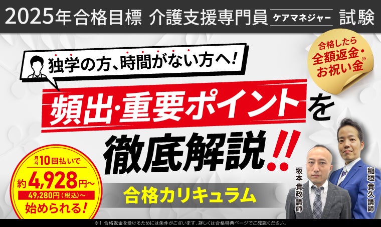 【2025年合格目標】介護支援専門員(ケアマネジャー)試験合格カリキュラム/合格総合講義リリース!
