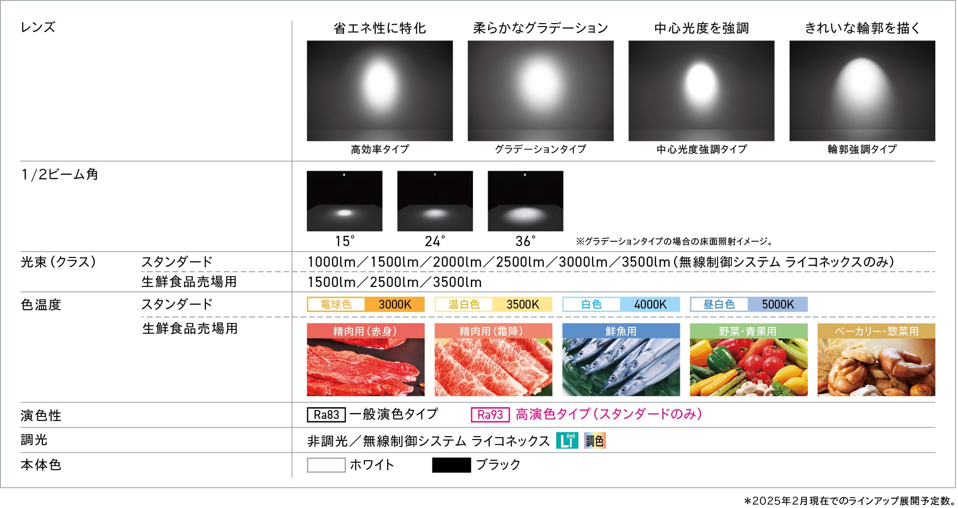 配光設計の異なる4種のレンズと明るさや色温度の異なる光源などを自由に組み合わせることで、約1,500通り(※1)の幅広い照明演出ができるLED照明のシリーズです。照明演出を構成する配光、色温度、明るさなどを用途に合わせた仕様に組み替えることで、施設によって異なる照明に対するニーズに的確に対応し、空間の雰囲気や魅力を向上させます。