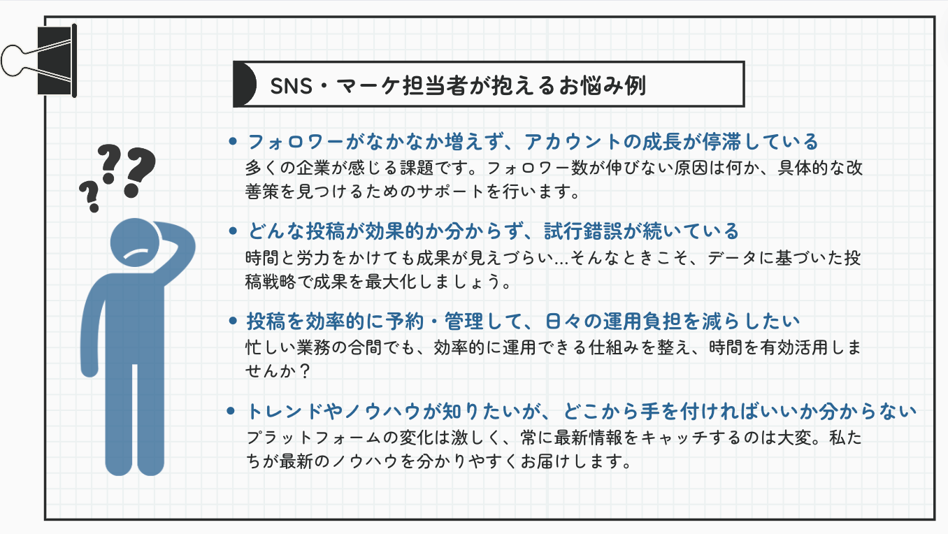 SNS運用でこんなお悩みはありませんか?