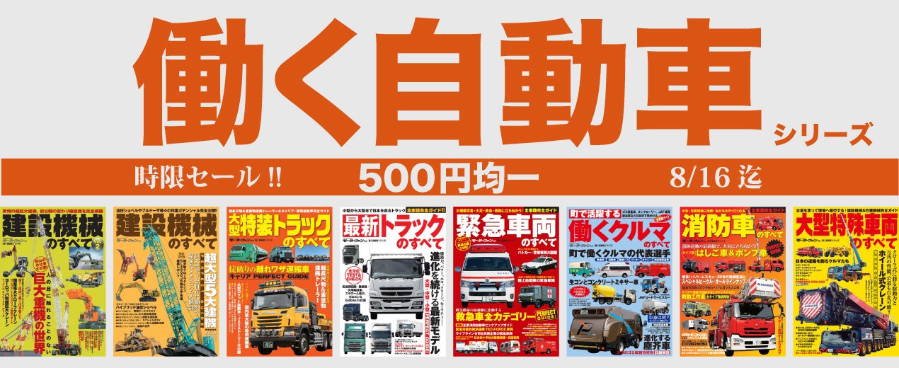 国内外のインフラを支えるクルマたちをたくさんの写真と詳細な解説記事で紹介する『働く自動車』シリーズ(電子書籍)の時限セール実施中【期間:8/10~16】