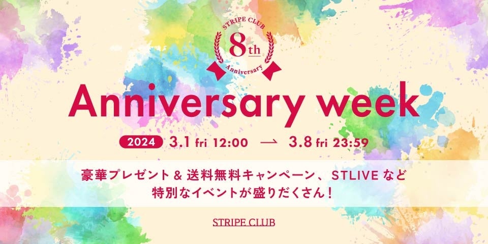 「STRIPE CLUB」は、2024年3月1日にサイトオープン8周年を迎えます。その記念に、日頃ご愛顧いただいているお客様へ感謝を込め、3月1日(金)より8日間限定で特別なイベントを開催いたします。