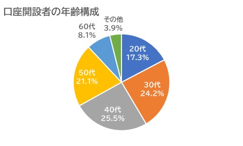 新規にFX口座を開設した投資家は、40代が25.5%でトップとなった。その後は、30代が24.2%、50代が21.1%、20代が17.3%と続いた。