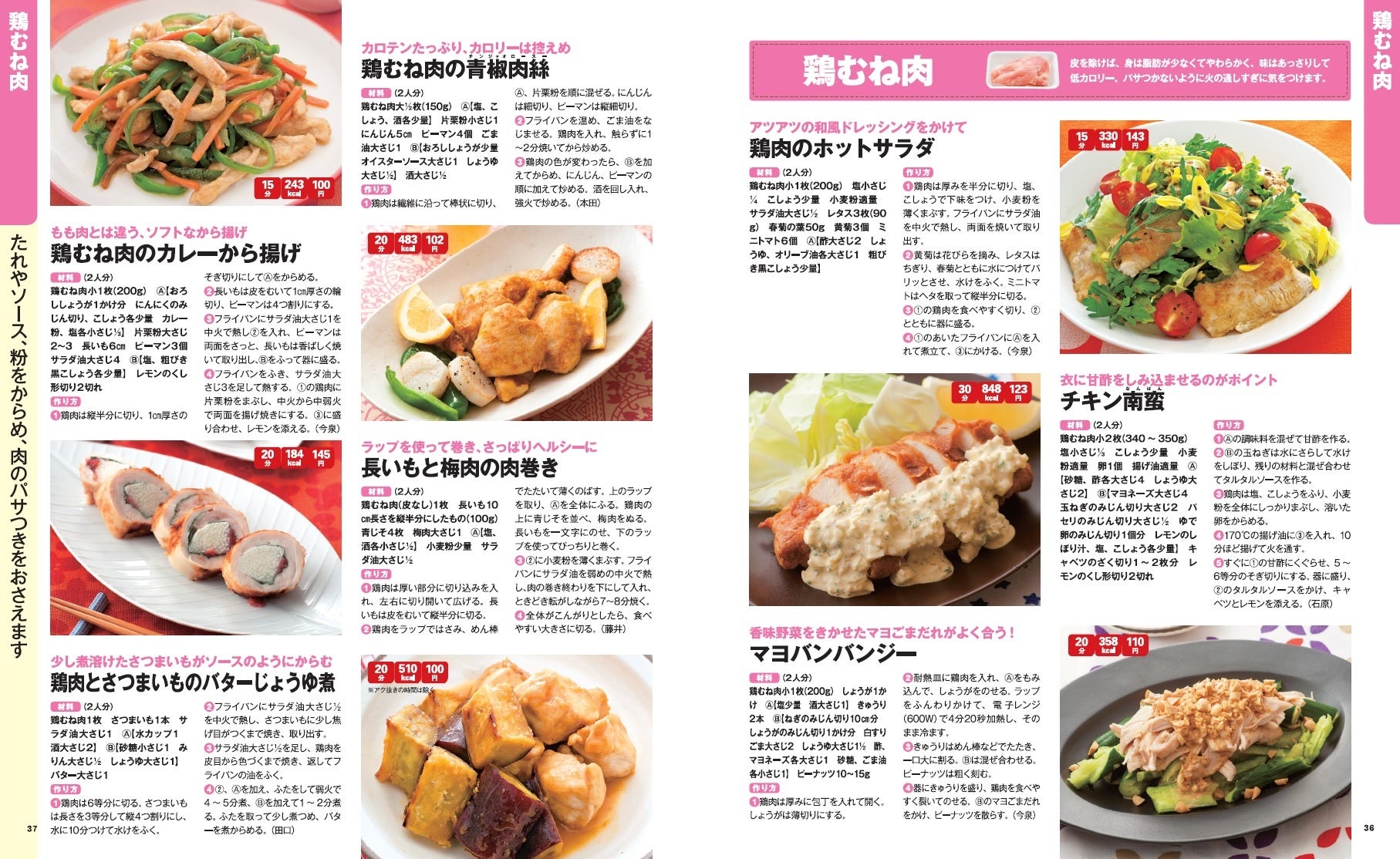 また、365品のレシピすべてに食材費・調理時間、カロリーの目安を掲載。急いでいるときや節約したいときのレシピ選びの参考にしてみてください。主菜は10分以内、副菜は5分以内でできるものもあります。もやし、豆腐、厚揚げなどのお買得食材を使ったおいしい節約おかずも見つかります。