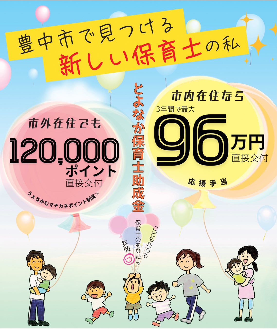 豊中で働く保育士を全力サポート!最大96万円!保育士助成金を拡充