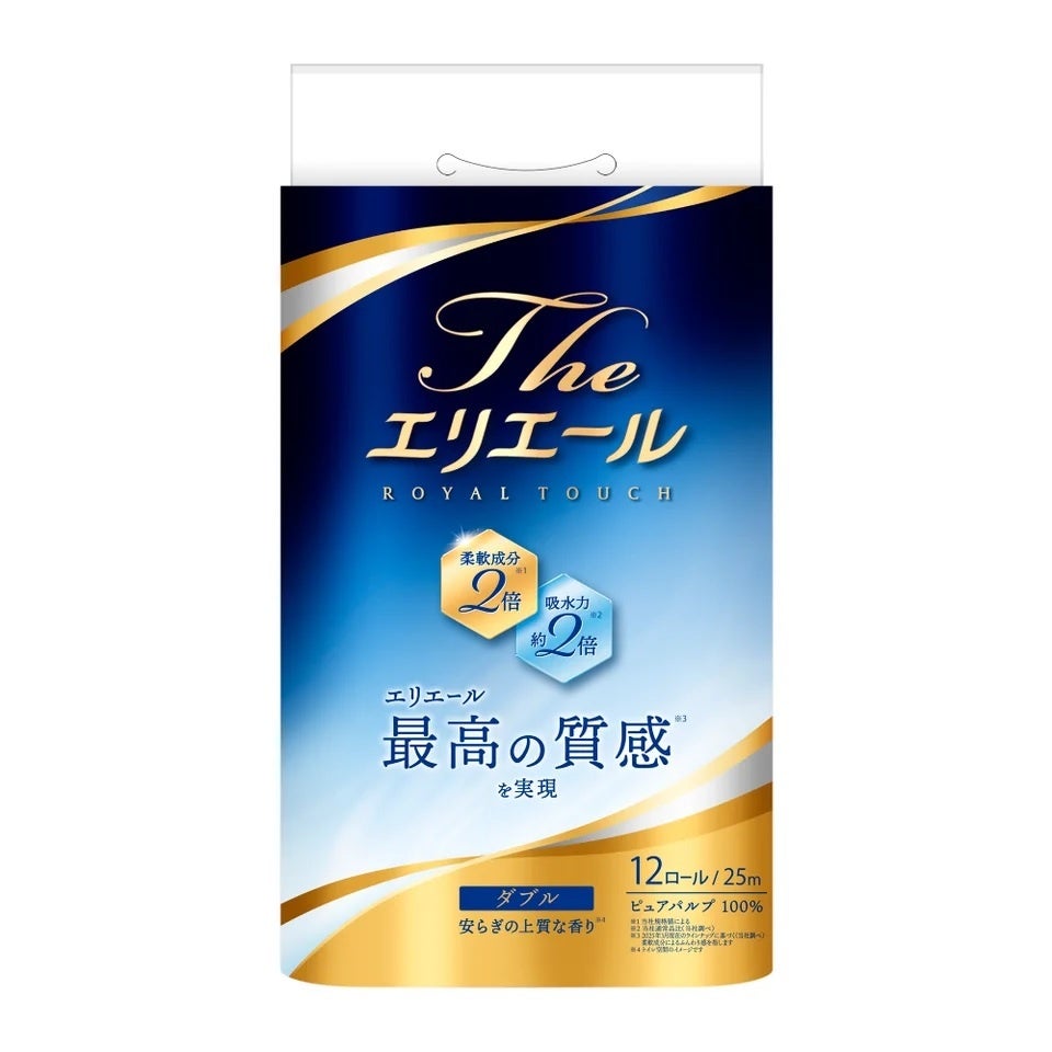 『Theエリエール トイレットティシュー』は、これまでにない柔らかな肌触りを実現したトイレットペーパーです。毎日のトイレ時間が、もっと充たされる時間になるよう願い、ひとつ上のやさしさを込めました。心地よい肌触りと心やすらぐ香りで、使う方の幸せや「心のゆとり」につながる商品を開発しました。