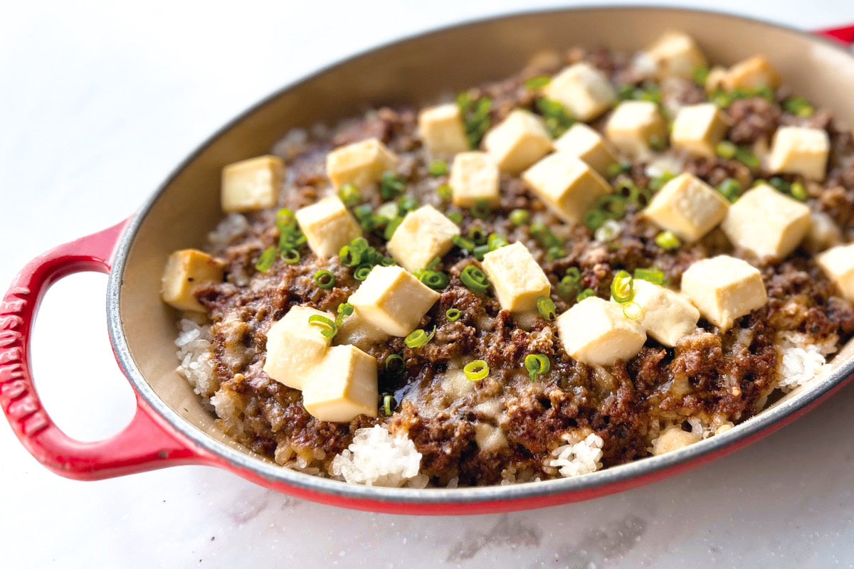 ピリッと辛いマーボー豆腐とコンソメで炊いたライスが絶妙に絡み、上からとろけるチーズをかけて焼き上げた一品。洋風のドリアに中華のアクセントを効かせた、