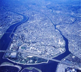 江戸川区は東に江戸川、西に荒川や中川、南に東京湾と三方を水に囲まれ、23区で最も公園面積が広く、都心区の中で水とみどりが豊かな地域となっています。現在は約69万人の区民が暮らしており、地盤は陸域の70%が満潮位以下のゼロメートル地帯となっています。