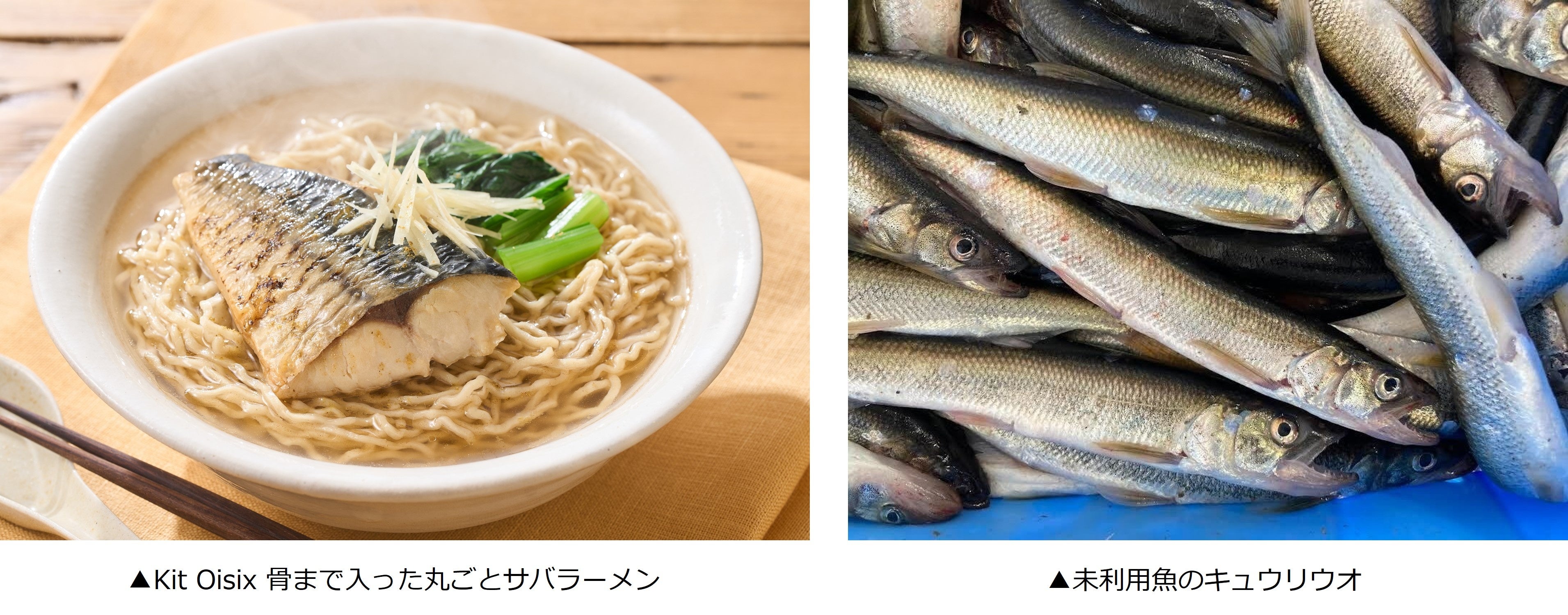 「Oisixサステナブルマーケット」では、身近なシシャモやワカサギと近縁ながら、キュウリの匂いがすることからほとんど食用とされてこなかった未利用魚「キュウリウオ」をさっぱりした味付けの南蛮漬けにしたおかずや、石巻で水揚げされたサバを骨までまるごと使用したオリジナル麺のラーメンが楽しめるミールキットが新登場。付加価値のある新しい魚の食べ方を提案します。