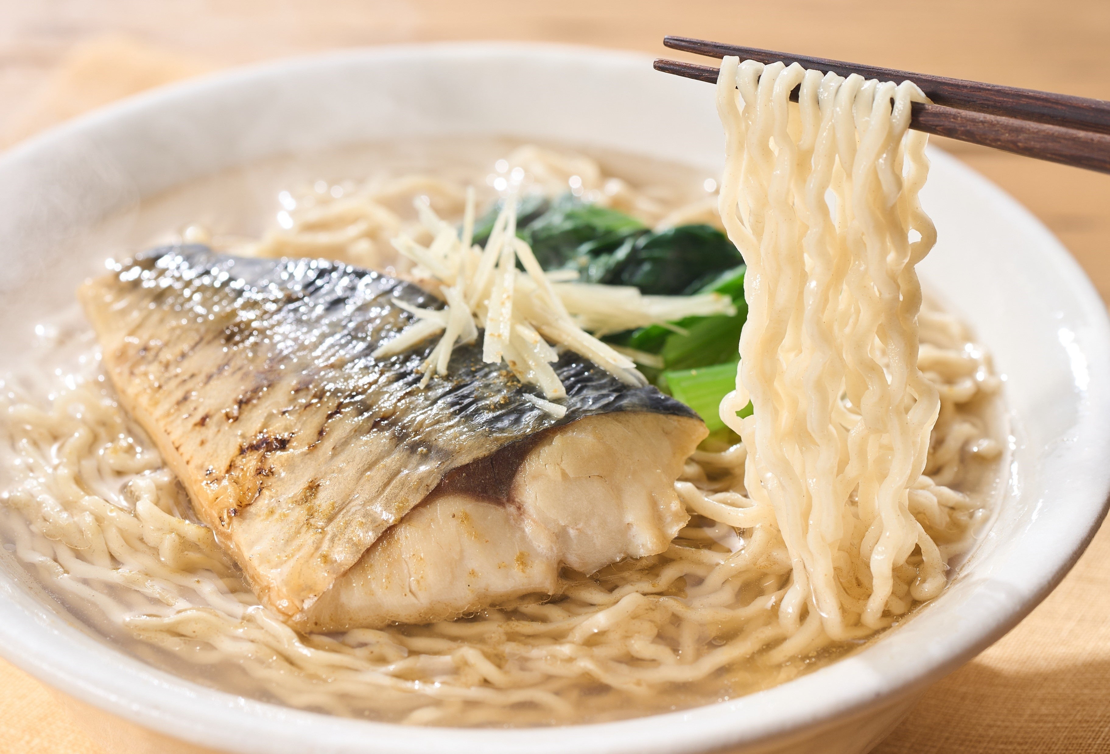 商品説明:石巻で水揚げされたサバを骨までまるごと使用した塩ベースのスープは、サバのクセを抑えて旨味を引き出した、さっぱりとしながらも深い味わいです。麺は国産小麦を使用し、サバの骨粉を練りこんだオリジナルのちぢれ麺。さらにOisixの人気商品、ふわっとジューシーなノルウェー産塩焼きサバを贅沢にトッピングしました。1杯でサバをまるごと堪能できるラーメンです。
