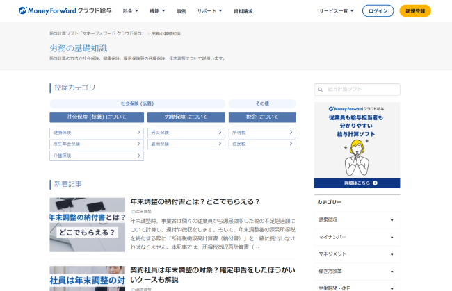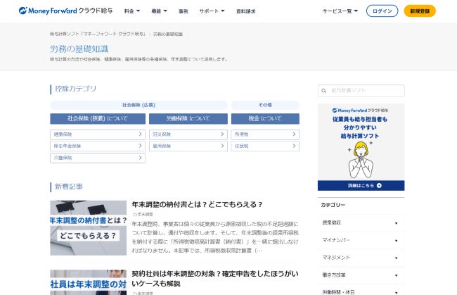 『マネーフォワード クラウド』、労務業務支援メディアを「労務の基礎知識」に統合リニューアル
