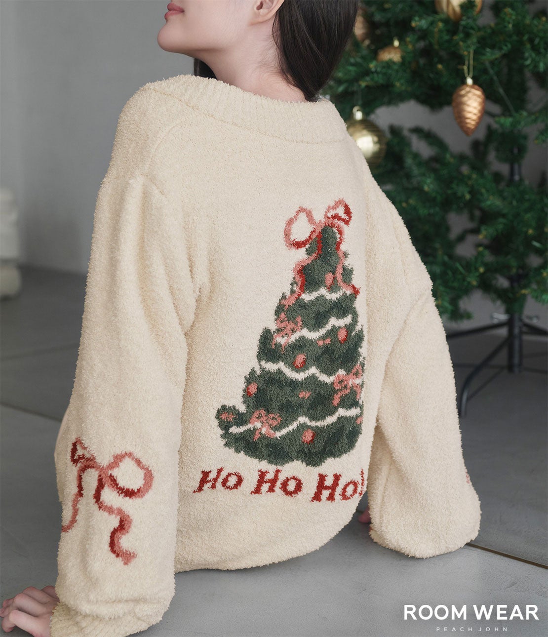 ホリデーモチーフの柄を編み込んだ、ハッピィなデザインのルームカーディガン。