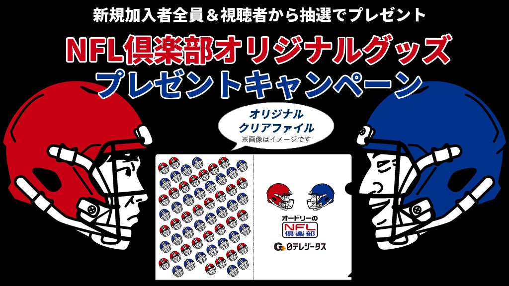 さらに、日テレジータスでは、スカパー!にて新規ご加入いただいた方全員に日テレジータスオリジナル「オードリーのNFL俱楽部」クリアファイルをプレゼント!