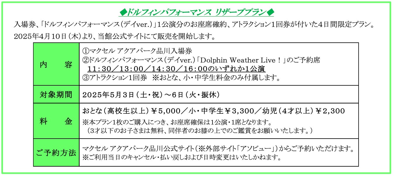 変わりやすい初夏の空模様をテーマに“天気予報”仕立てでお送りするデイパフォーマンス。軽快なピアノの楽曲にのせてイルカたちが軽やかなジャンプを繰り出す“快晴”の一幕から始まり、続くのは水中ダンスで表現する情緒的な雨降りのシーン。ラストはアクアパークの“LIVE”なお天気