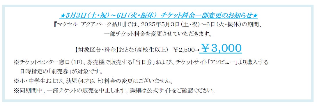 ※5月3日(土・祝)~6日(火・振休)は9:00~21:00(最終入場20:00)となります。