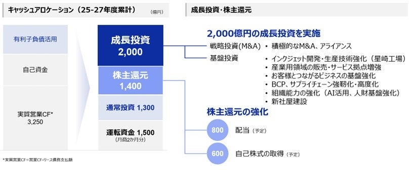配当については、1株当たり年間100円の配当を下限とし、配当性向40%を目安として還元する。これまでの増配・維持の流れを引き継ぎ、安定的かつ継続的な株主還元を実施する基本方針の下、さらに強化していく予定だ。また、CS B2027の期間中に合計600億円の自己株式の取得を予定している。加えて、業績等の状況に応じて追加還元も検討していく。
