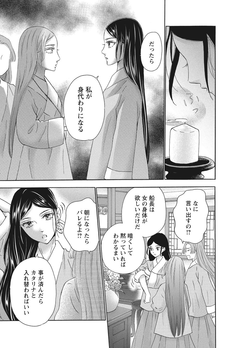 親から捨てられ売られ、性暴力を受けながらの過酷な船旅も乗り越えた後、異国で奴隷として生きる…主人公のドラ(龍)、マルタ(志野)、カタリナ(桔梗)の人生はハードモードです。