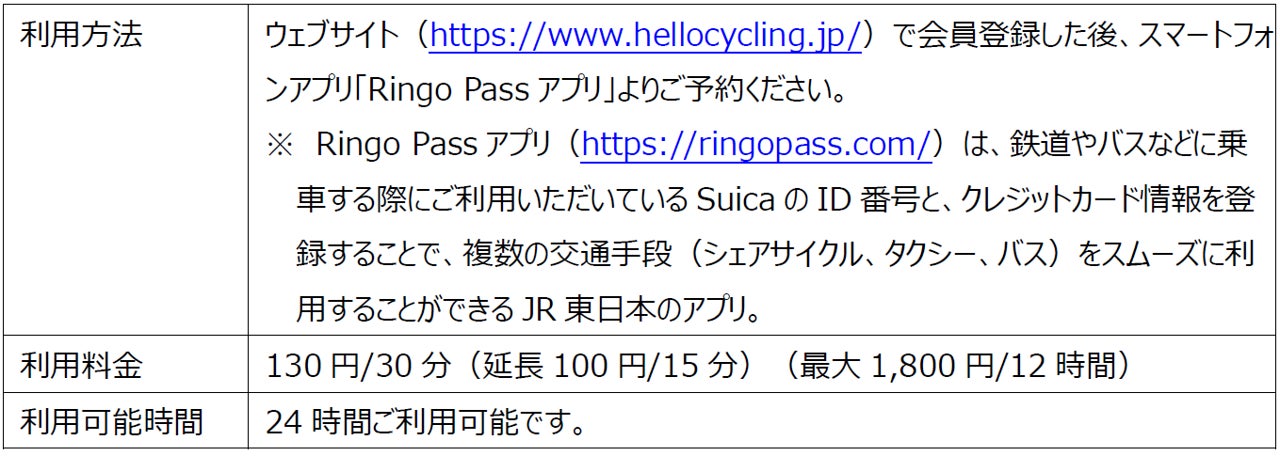 <シェアサイクルのサービス内容について>