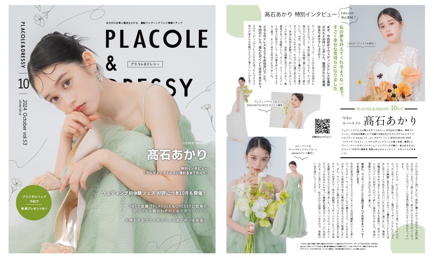 【2024年10月号】俳優 髙石あかりさんが『PLACOLE&DRESSY』のカバーモデルとして登場!