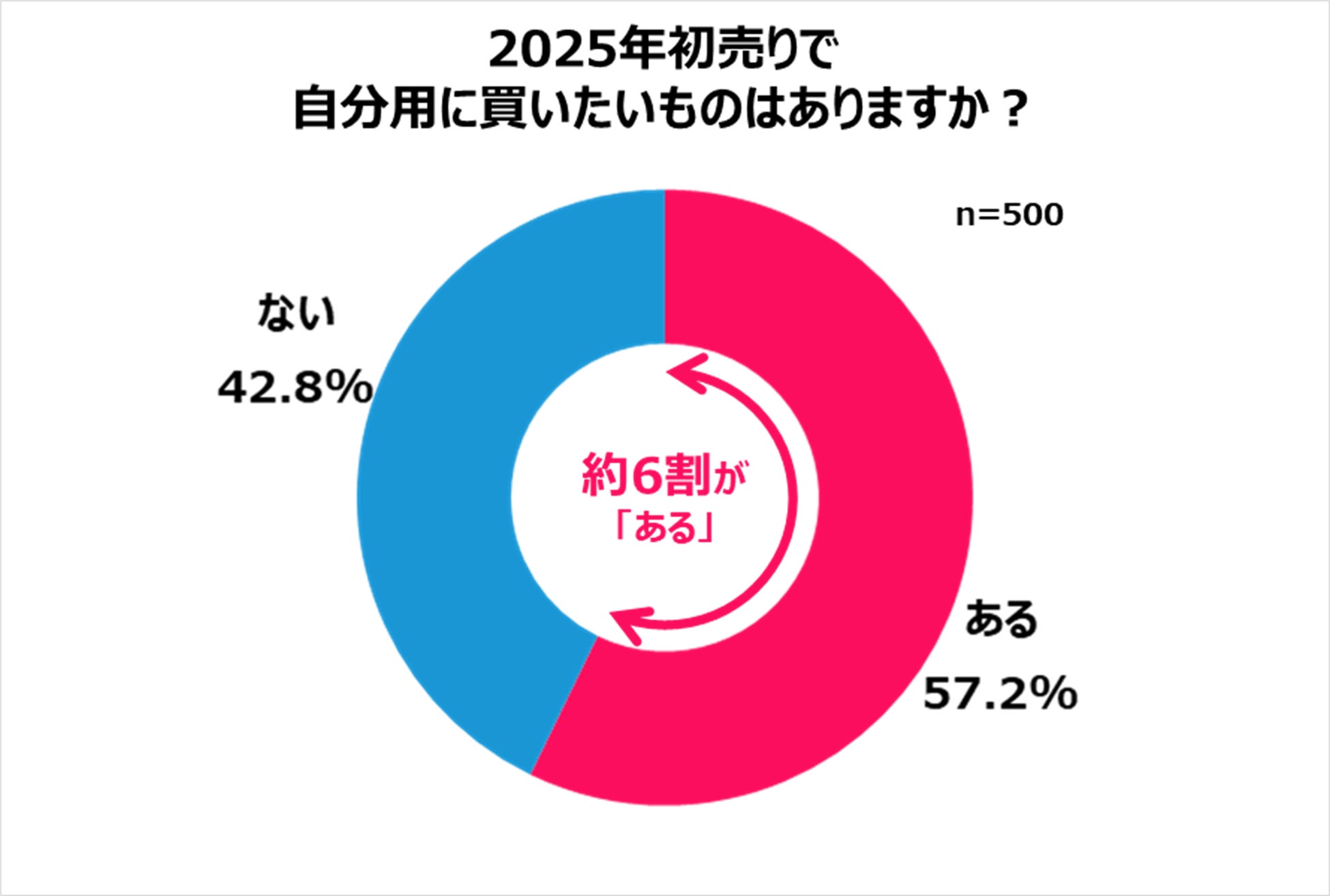 一方、初売りで買いたいものがある女性は57.2%。特に人気なものは「服(27.4%)」「コスメ(23.0%)」「スキンケア(19.0%)」で、クリスマスプレゼントと同じ3つのアイテムが上位でした。