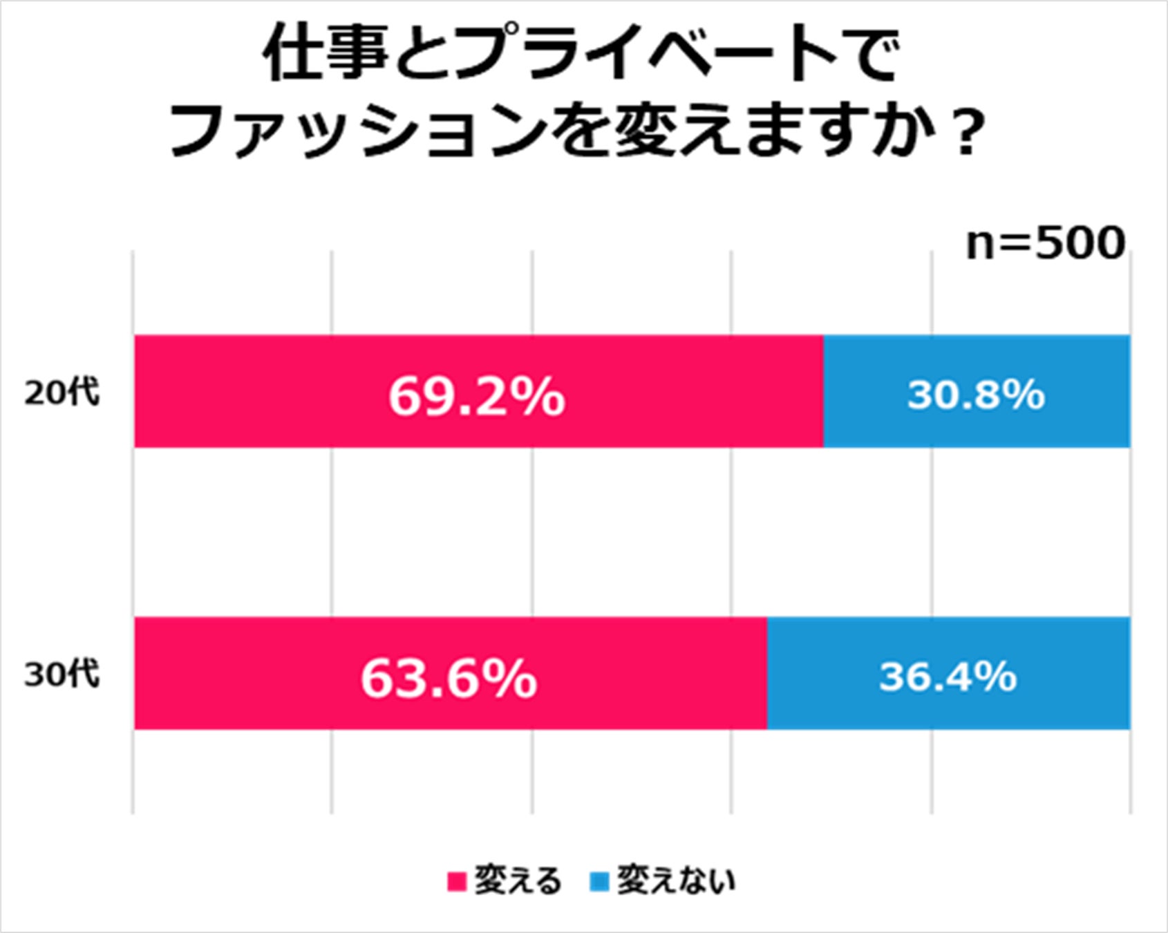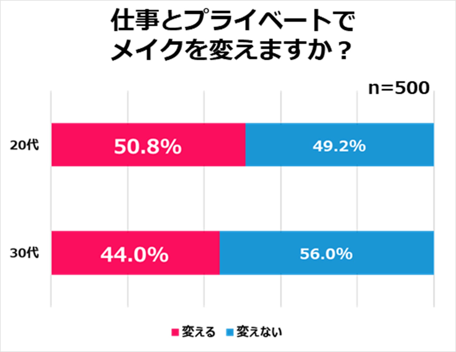 2024年5月には、同年夏に向けた実際の買い物意向を調査しました。その結果、同年の春(新年度)に異動や転職、新入社員の入社など、職場環境に変化があった人ほど、夏のコスメや服の購入意欲が高い傾向が明らかになりました。環境が変わったことで新たなアイテムが必要になった人や、気持ちや収入に変化があり、夏の買い物に積極的な人がいたと考えられます。また、20代の50.8%、30代の44.0%が仕事とプライベートでメイクを「変える」と回答。ファッションも、仕事とプライベートで変えている人が過半数であることがわかりました。「仕事ではクールなメイクをすることで気持ちが引き締まる(神奈川県・31歳)」「お出かけするぞ!という気分になる(岡山県・34歳)」といった意見が寄せられ、メイクやファッションで気持ちをコントロールしている人もいることが明らかになりました。