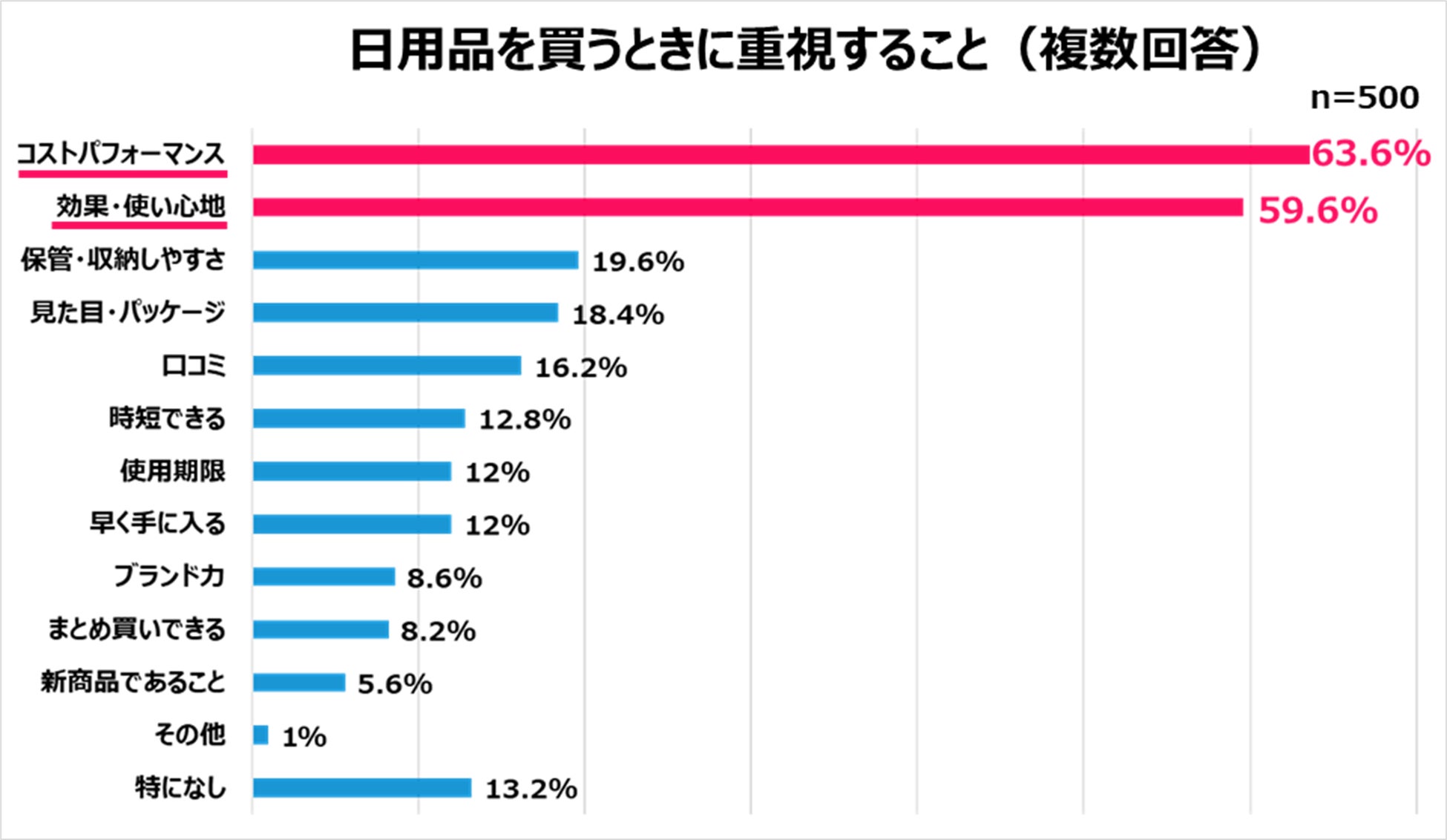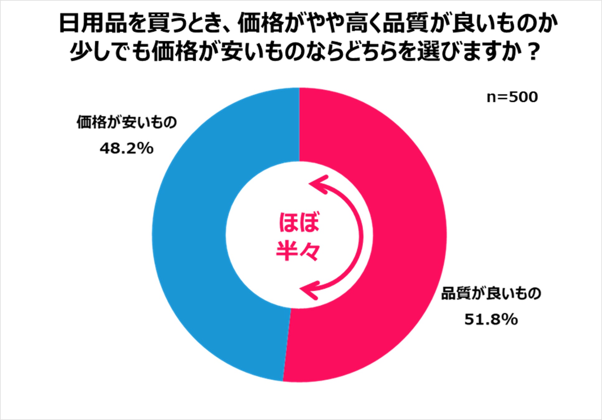 日用品を買うとき重視すること「コスパ」「効果・使い心地」。品質優先派と価格優先派はほぼ半々