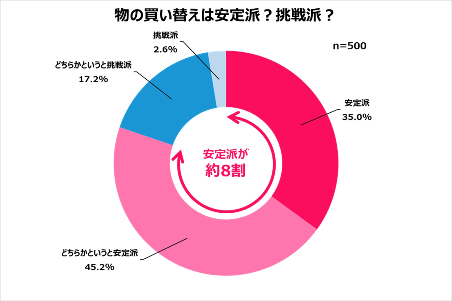 物の買い替えは安定派が約8割。挑戦派は「良いものを求めて新製品をどんどん試す」