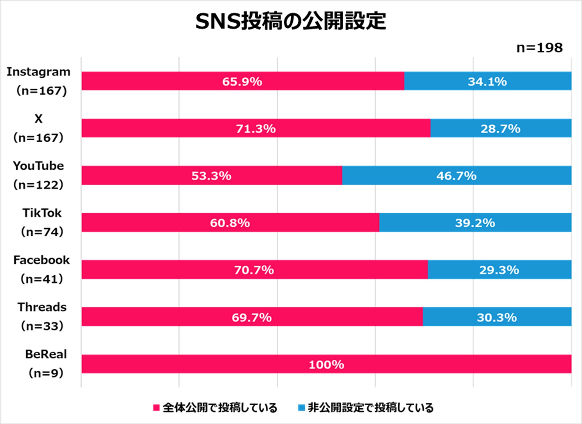 SNSでの発信は「全体公開」が過半数。「好みが合う人の共感を得たい」「推しに見てほしい」は13.6%