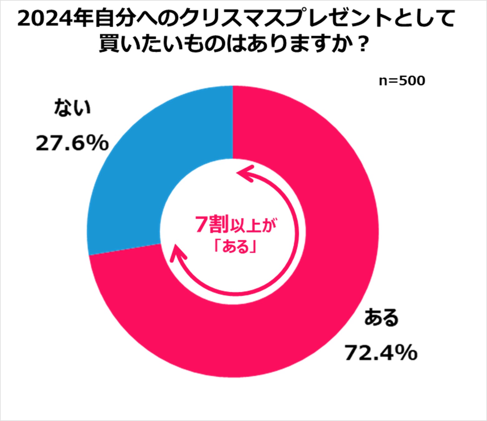 ・2024年自分にクリスマスプレゼントを買いたい人は7割以上。買いたいもの1位は「コスメ」2位は「服」