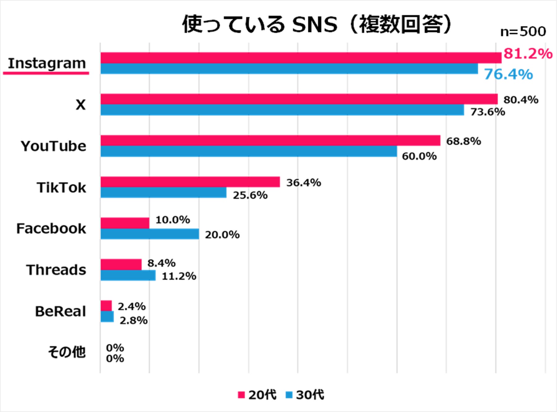 調査対象:全国の20代~30代働く女性 SNSを利用している人 計500名