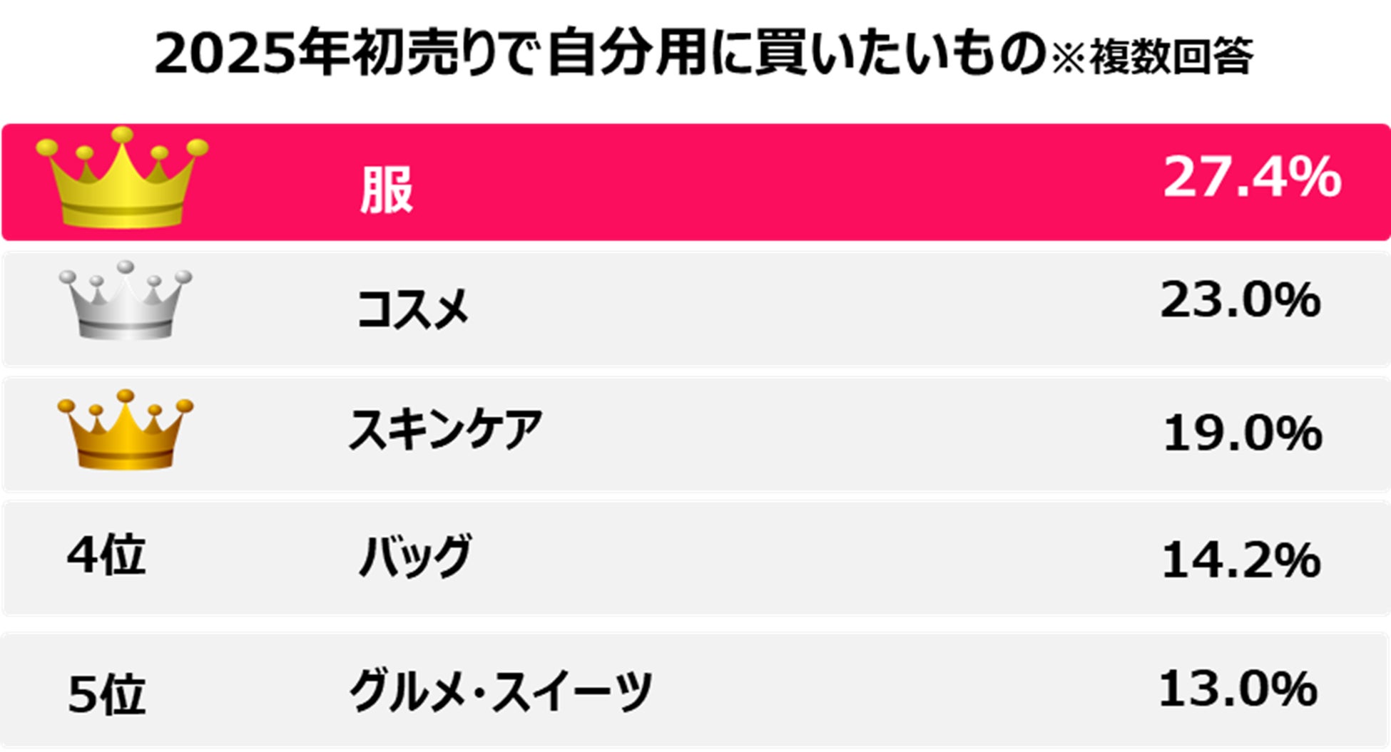 買いたいもの1位は「服」2位は「コスメ」 福袋は4人に1人が購入予定