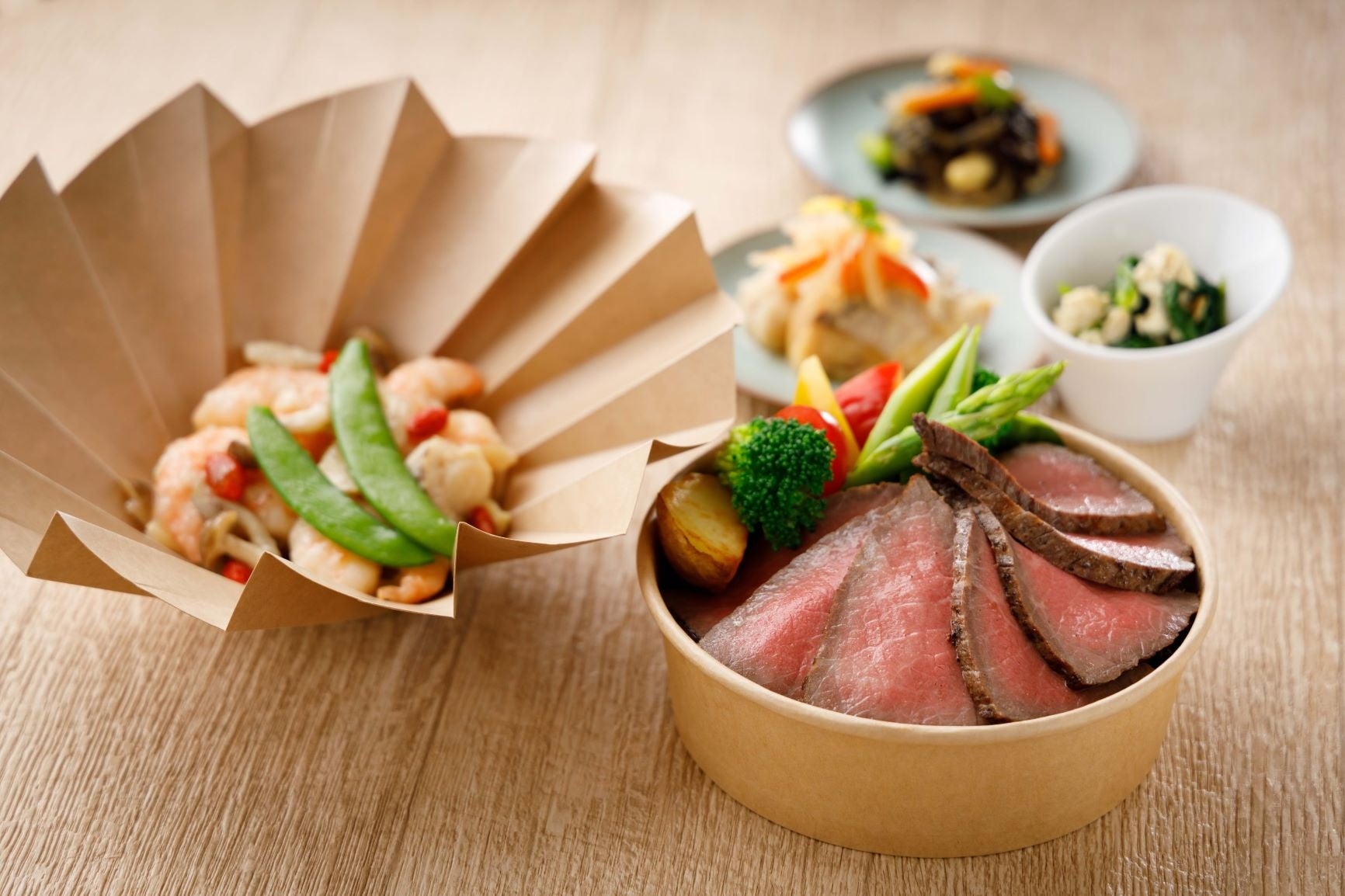 サラダや大豆ミートを使用した身体にやさしいメニューを含む約20種類のお惣菜のほか、ホテルパティシエによるスイーツもご提供いたします。オフィスやご家庭でランチタイムにぴったりのメニューの他、夕食のあと1品にも嬉しいメニューをご用意いたします。