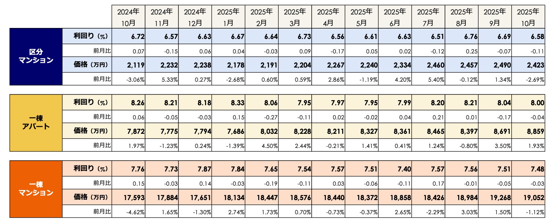 関連記事:住宅系収益不動産3種別とも、直近12年※で最高価格更新 「収益物件 市場動向マンスリーレポート」2025年9月期