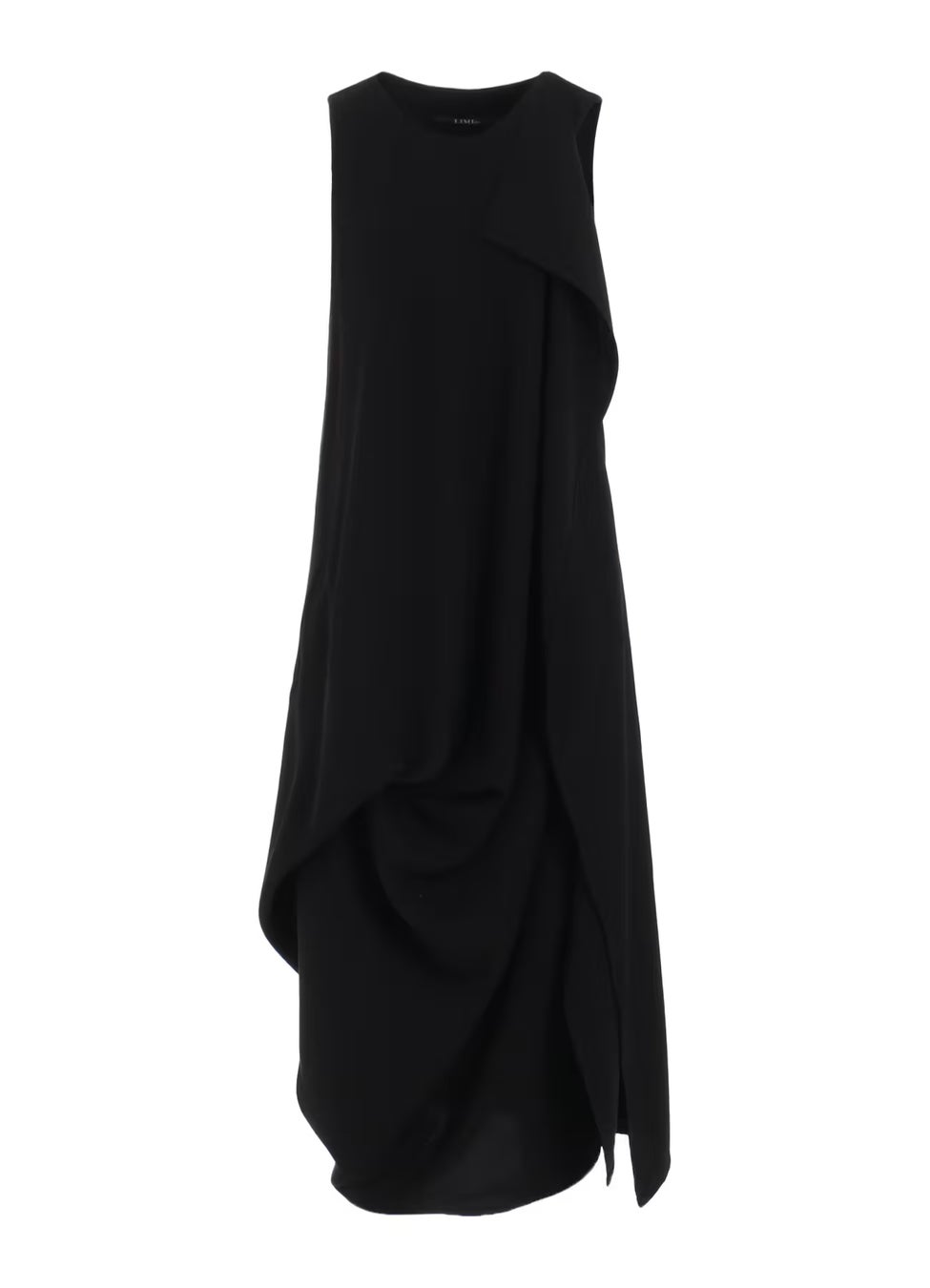 流れるようなドレーピングが特徴のワンピース。インナーの組み合わせによってオールシーズンの使用が可能。ダブルサテン