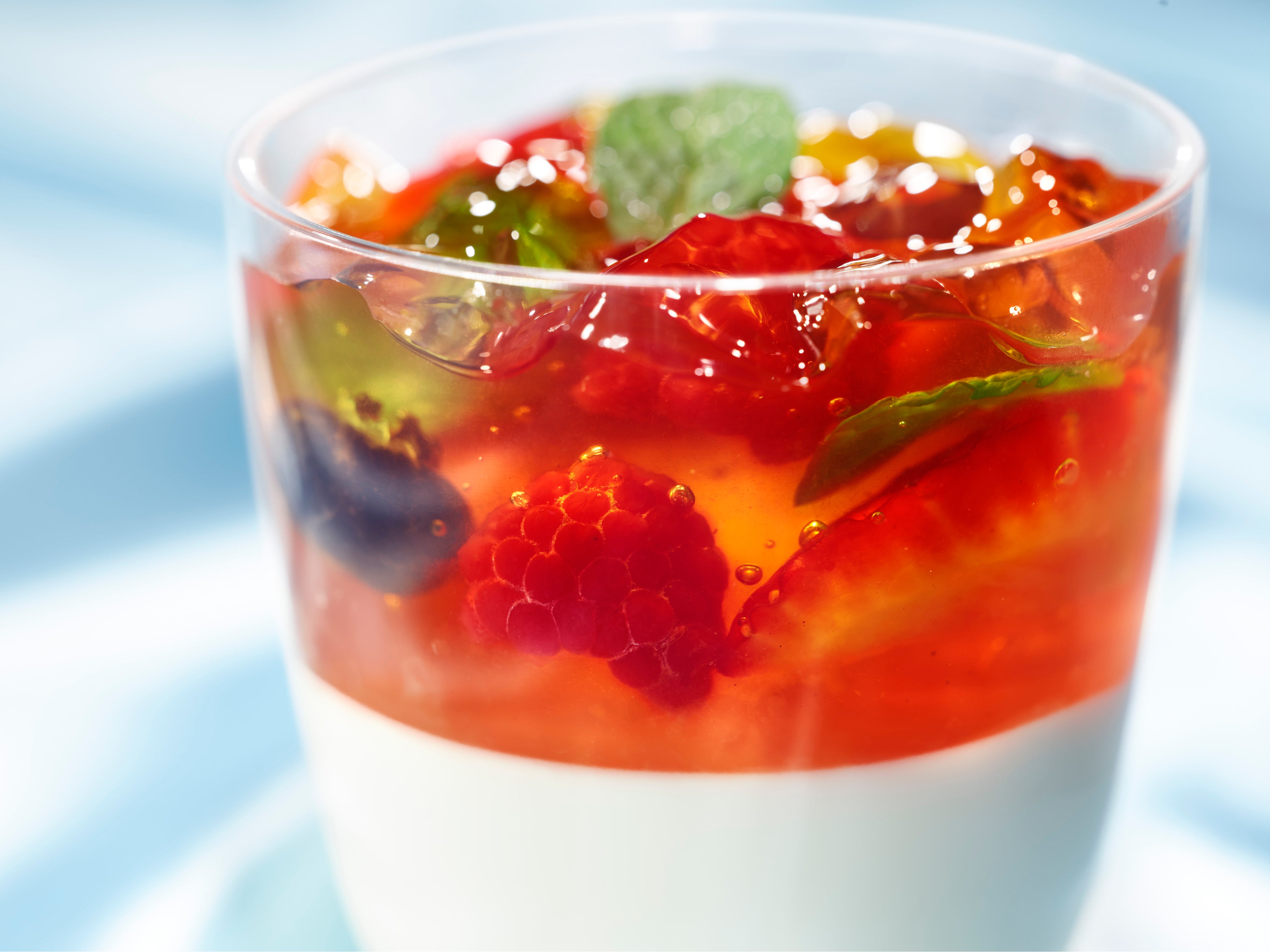 「東方美人茶プリン」は、東方美人茶で香り付けをしたなめらかな豆乳プリンの上に、香り高く煮出した東方美人茶のゼリーと色鮮やかなフルーツ(いちご・ブルーベリー・フランボワーズ)やミントを入れて仕上げました。夏らしい涼やかな色合いもお楽しみいただけるスイーツです。
