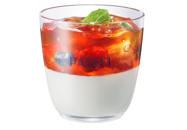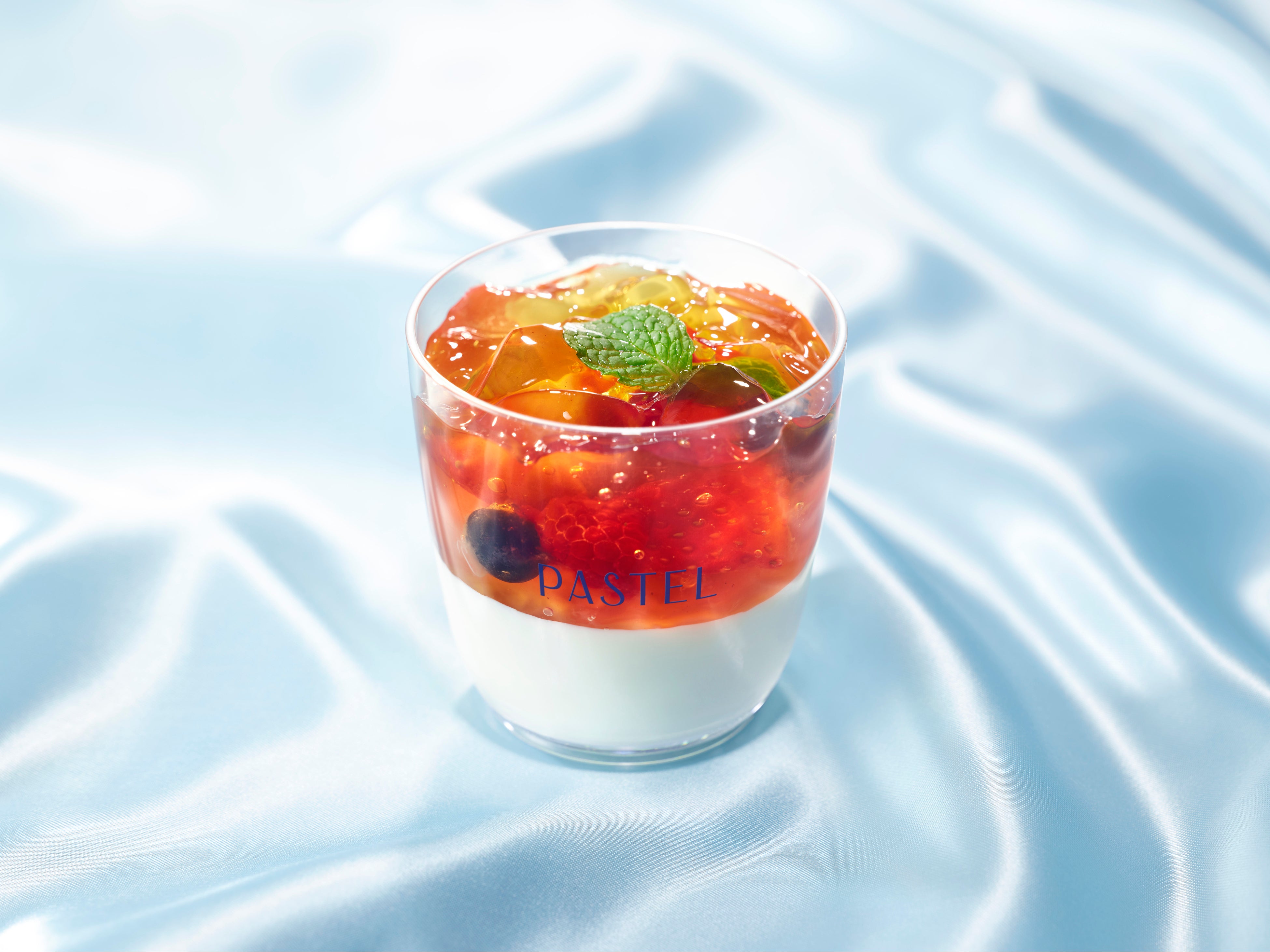 「パステル 表参道店」限定の夏向けのプリンとして、爽やかなお茶をいろいろなフルーツ素材と組み合わせて楽しむ台湾流のスイーツを開発、東方美人茶で香り付けをしたなめらかな豆乳プリンの上に、香り高く煮出した東方美人茶ゼリーと色鮮やかなフルーツ(いちご・ブルーベリー・フランボワーズ)とミントを入れて仕上げました。