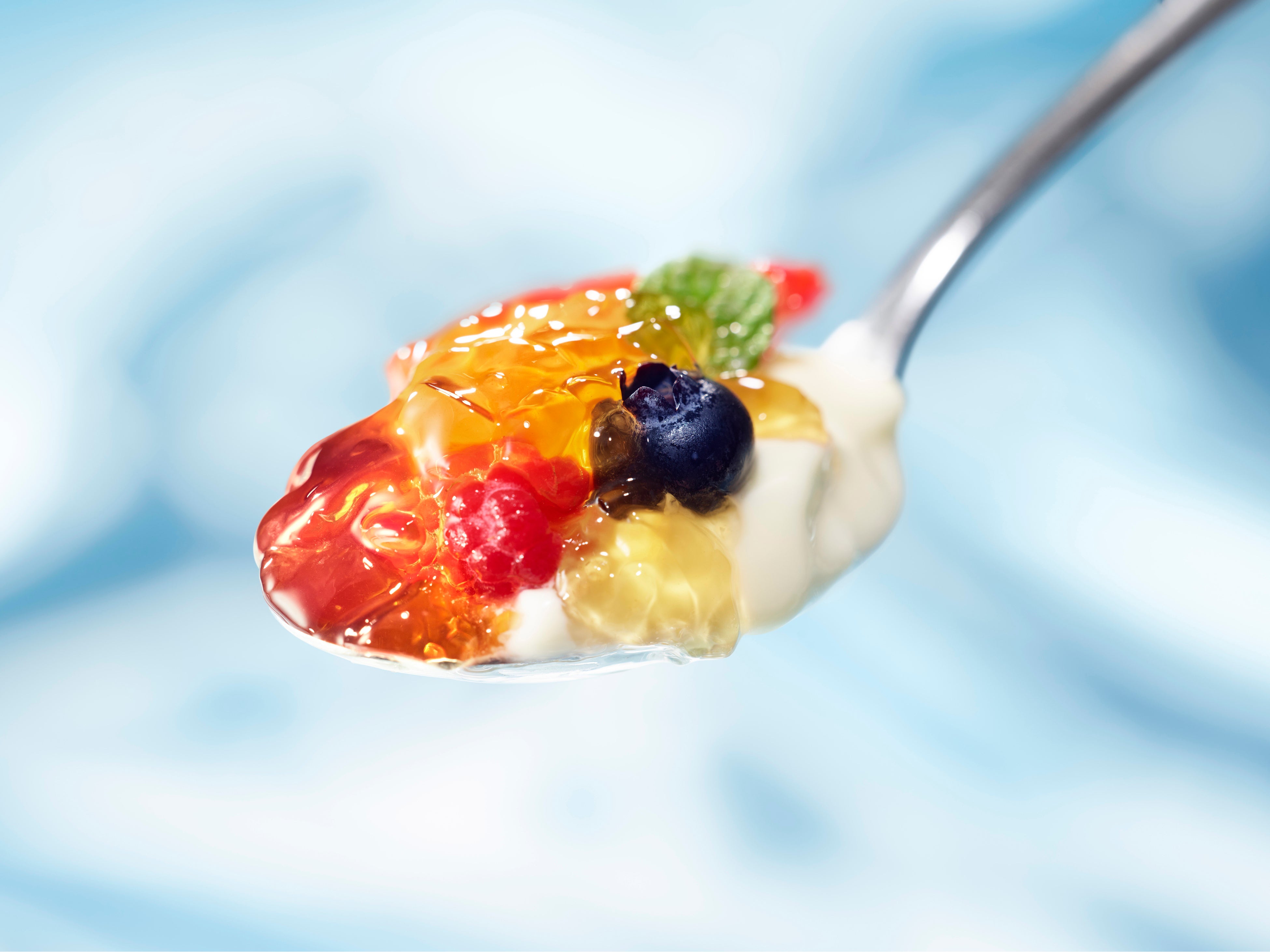 1さじ目はゼリー層のみで、2さじ目は豆乳プリン層と合わせてお召し上がりください。