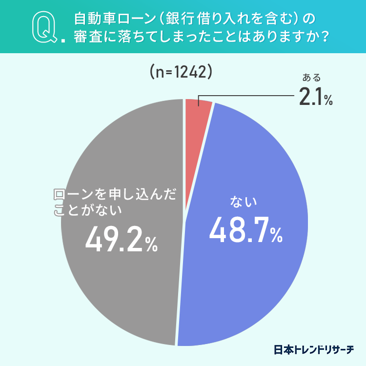 2.1%の方が、自動車ローン(銀行借り入れを含む)の審査に落ちてしまったことが「ある」と回答しました。