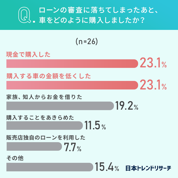 質問4:ローンの審査に落ちてしまったあと、車をどのように購入しましたか?