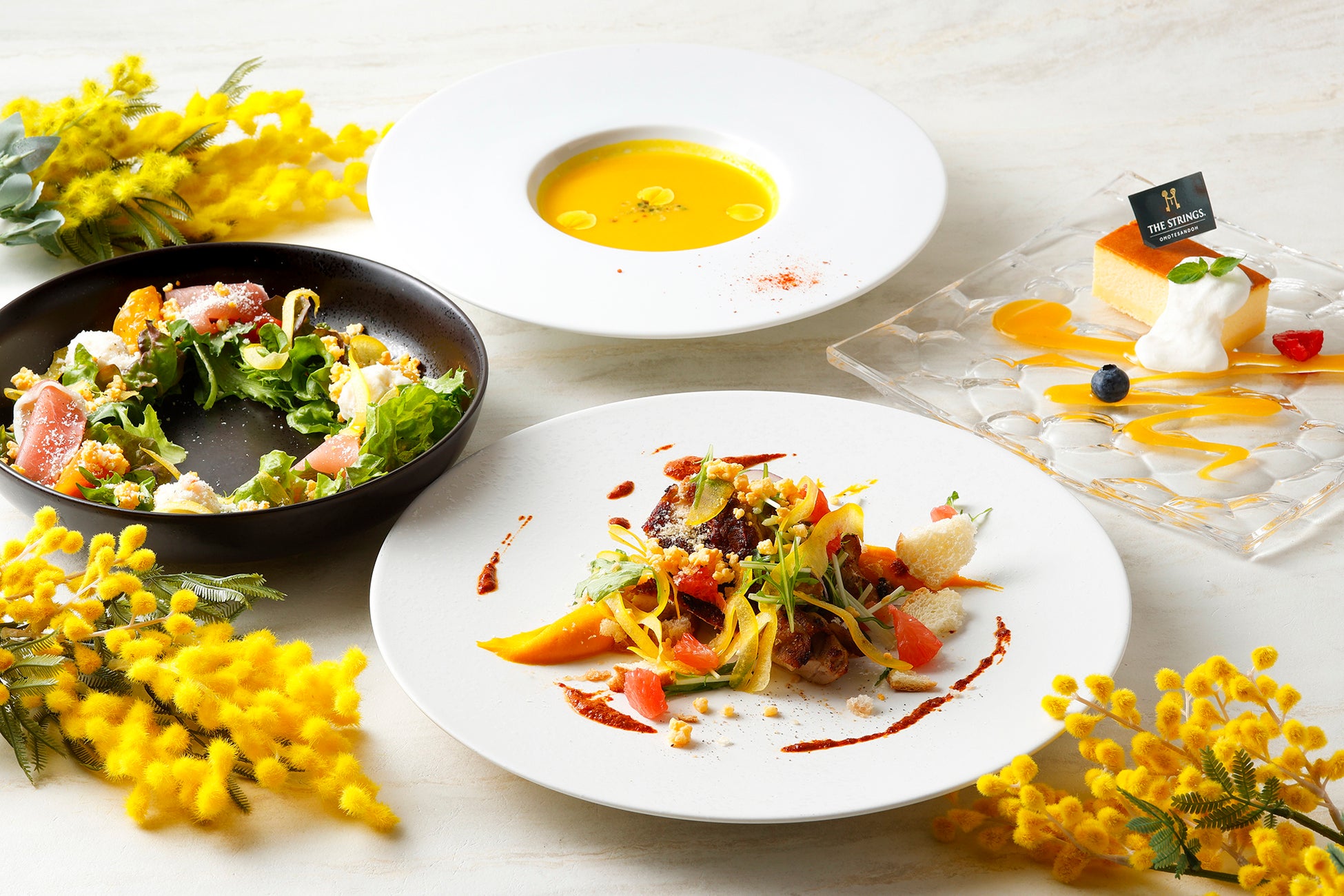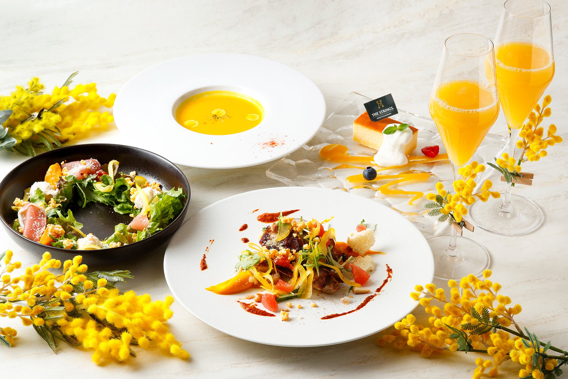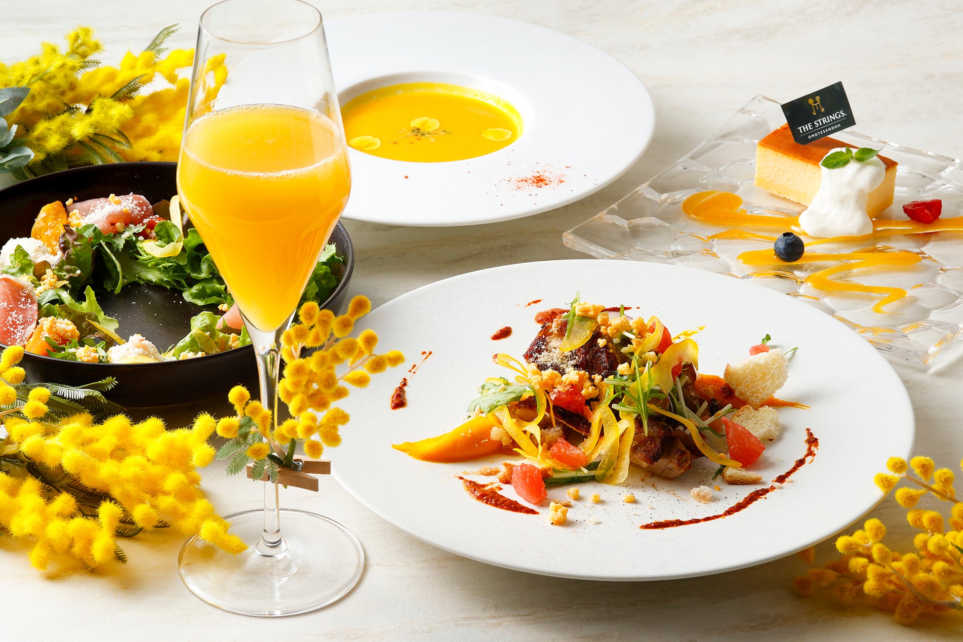 ザ ストリングス 表参道では、「国際女性デー」に賛同し、日々頑張る女性に感謝の気持ちを贈る限定プラン『ハッピーミモザコース』が登場。国際女性デーのシンボルであるミモザやハッピーイエローをテーマにしたメニュー内容でお届けいたします。