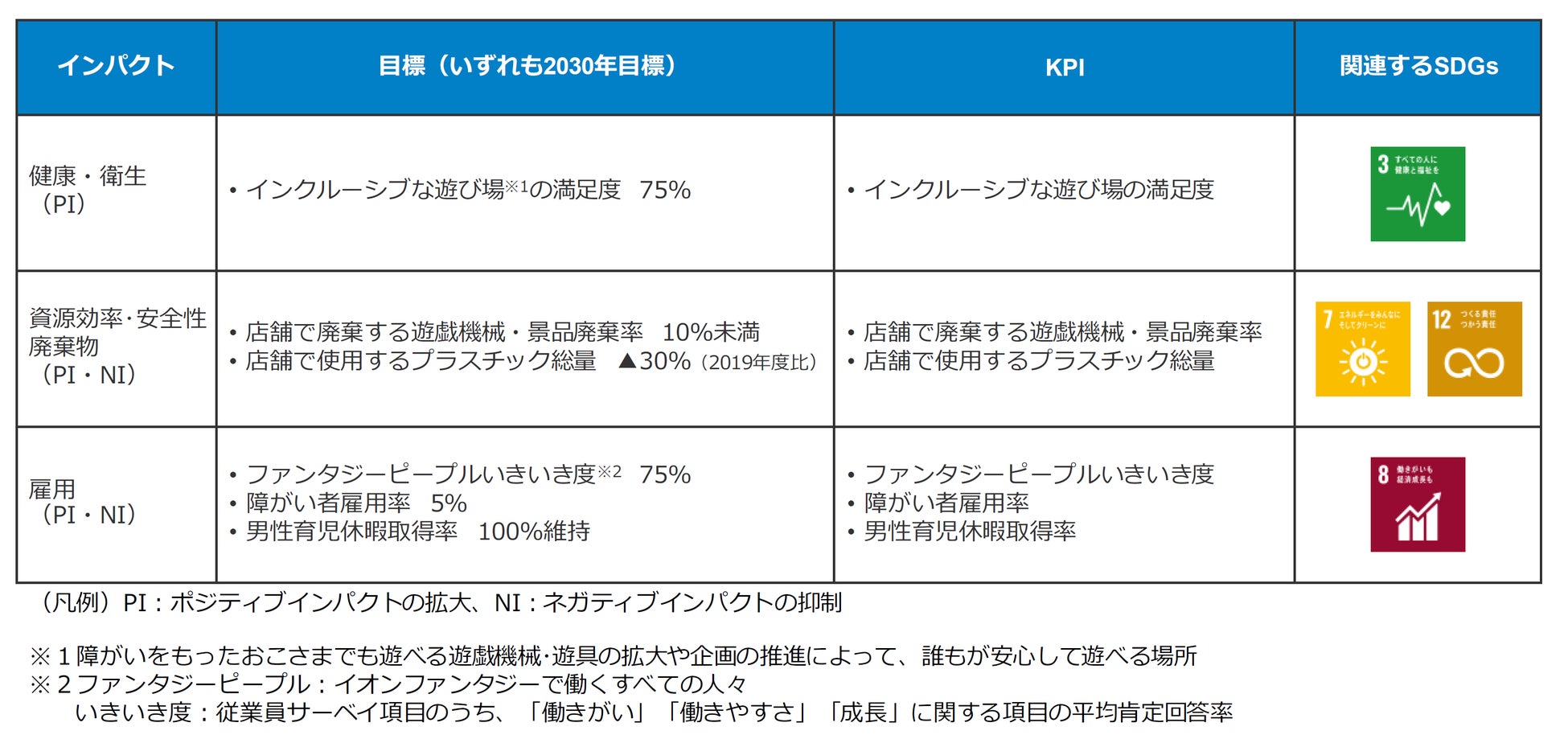 当社は「こどもたちの夢中を育み、”えがお”あふれる世界をつくる。」をパーパス(社会的存在意義)に掲げ、2022年4月には「サステナビリティ方針」を制定しており、持続可能な社会への貢献と企業価値向上を実現する企業を目指しています。本ローンの実行あたっては、当社のサステナビリティ・ビジョンならびに重要課題(マテリアリティ)を中心に、事業活動に伴う社会的責任や、SDGs 達成に向けた貢献について、あおぞら銀行による分析・評価に基づき、後記のKPI を設定しました。