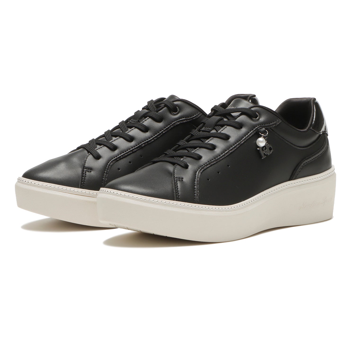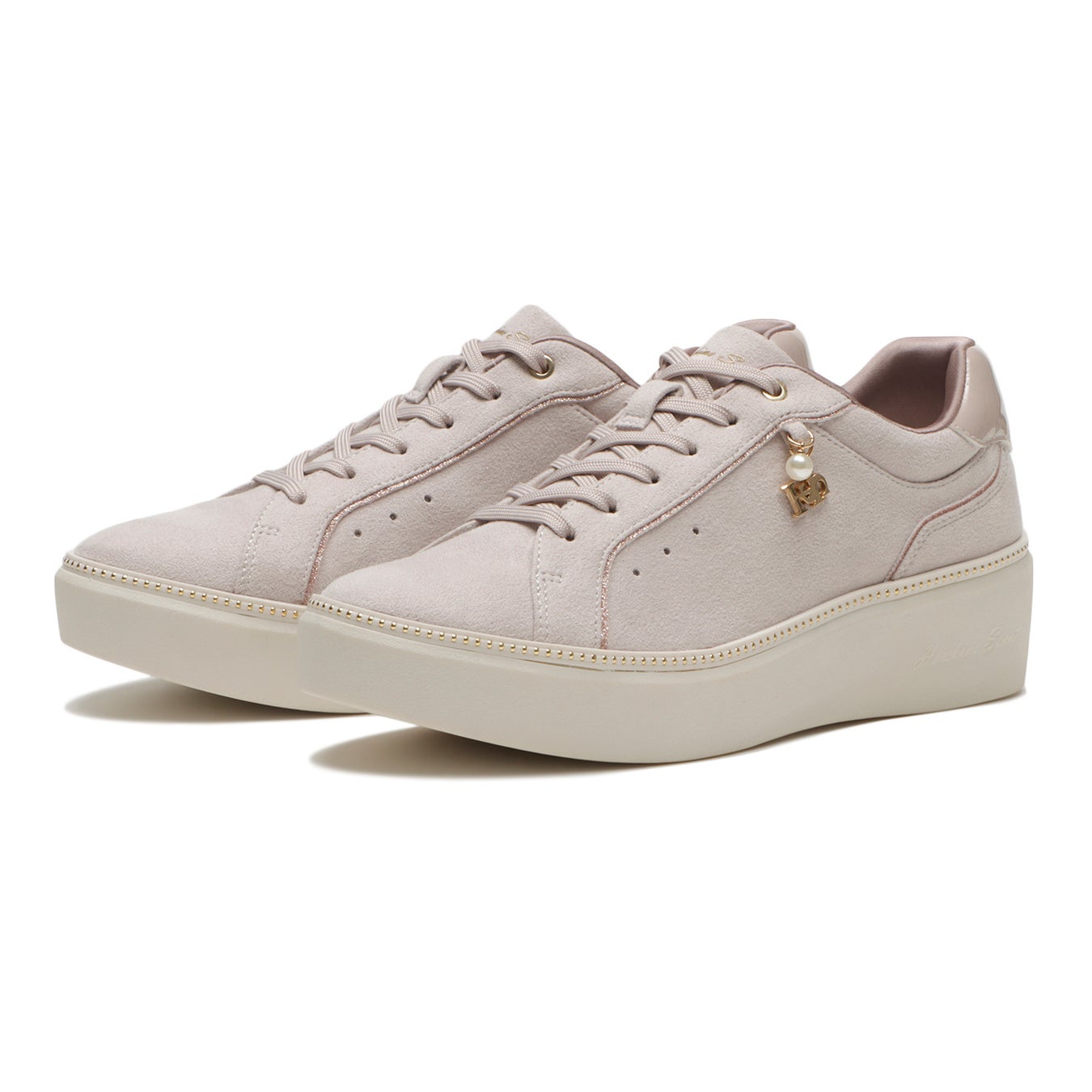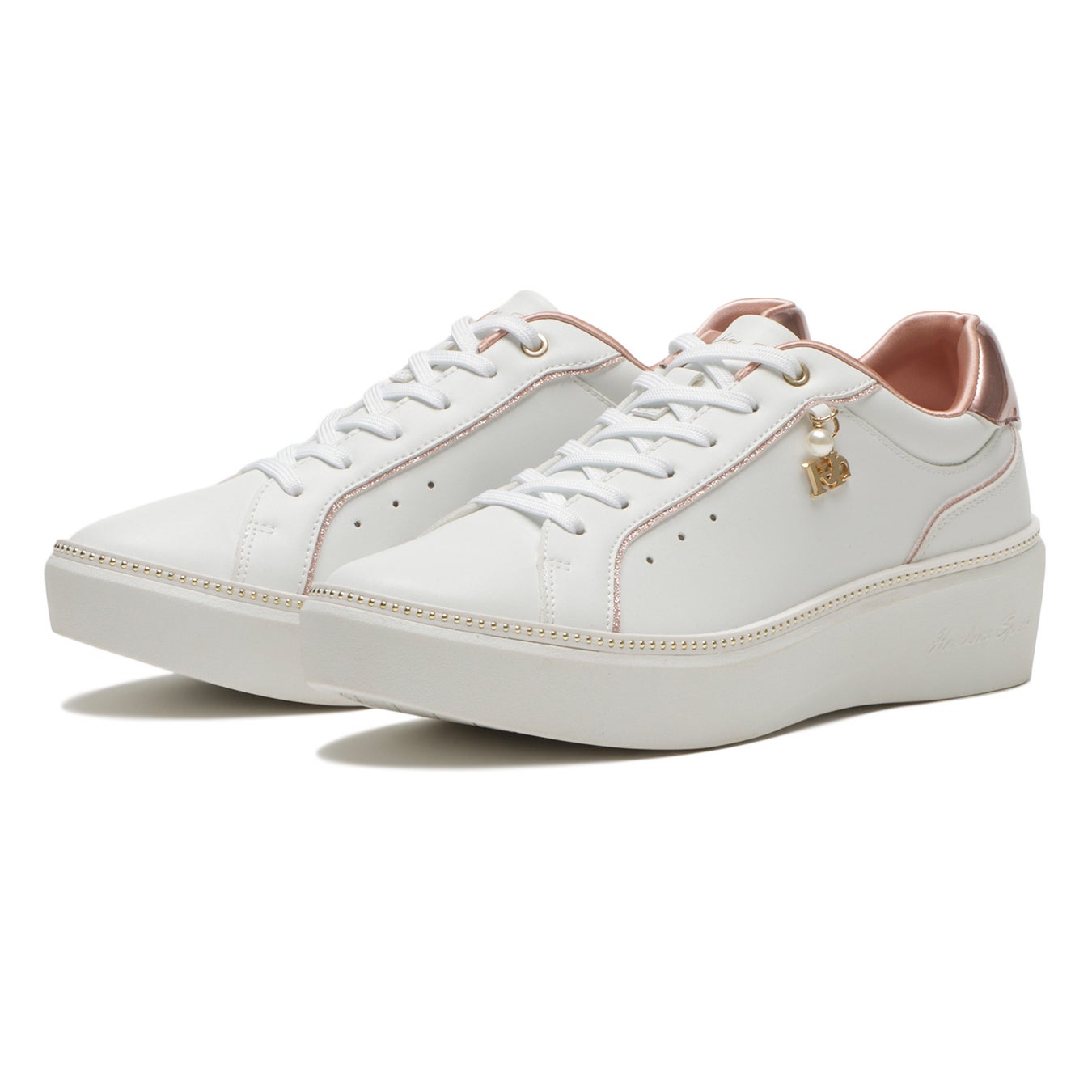 カジュアルコーデにも合わせやすいキレイめ厚底スニーカー。サイドについた小さいチャームがさりげなく揺れて、足元にキラメキをプラスします。シルエットや他のデザインはシンプルに、大人っぽく仕上げました。