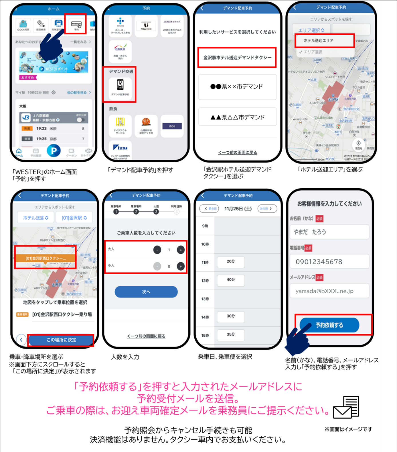 ・「金沢駅ホテル送迎デマンドタクシー」を選択し、WESTERからのご予約の場合と同様に操作してください