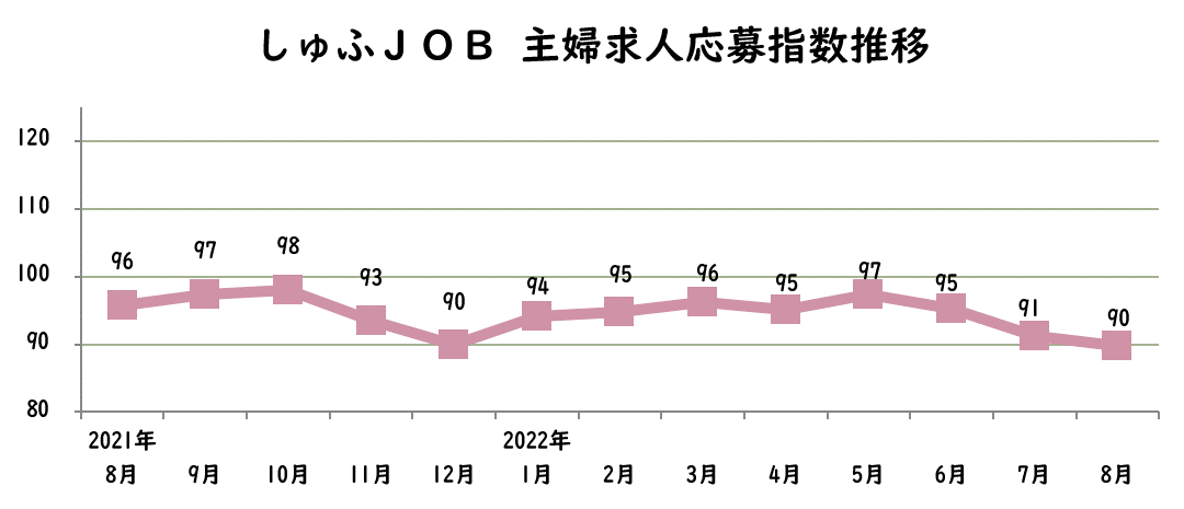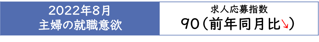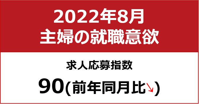 【主婦の就職意欲調査 2022年8月】主婦求人の応募指数90(前年同月比-6)