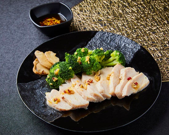 しっとり食感の胸肉を使用したサラダチキンをイタリア風にアレンジ!素材の良さを最大限に活かすため、エクストラバージンオリーブオイル、ニンニク、唐辛子からじっくりと時間をかけて抽出したペペロンチーノオイルを鶏とブロッコリーに回しかけ、イタリアの風を纏わせました。そこに、いぶりがっこの燻製香とニンニクのロースト香が同調しカリカリとした食感が加わることで、全体にリズムが生まれ最後まで美味しくお召し上がりいただけます。