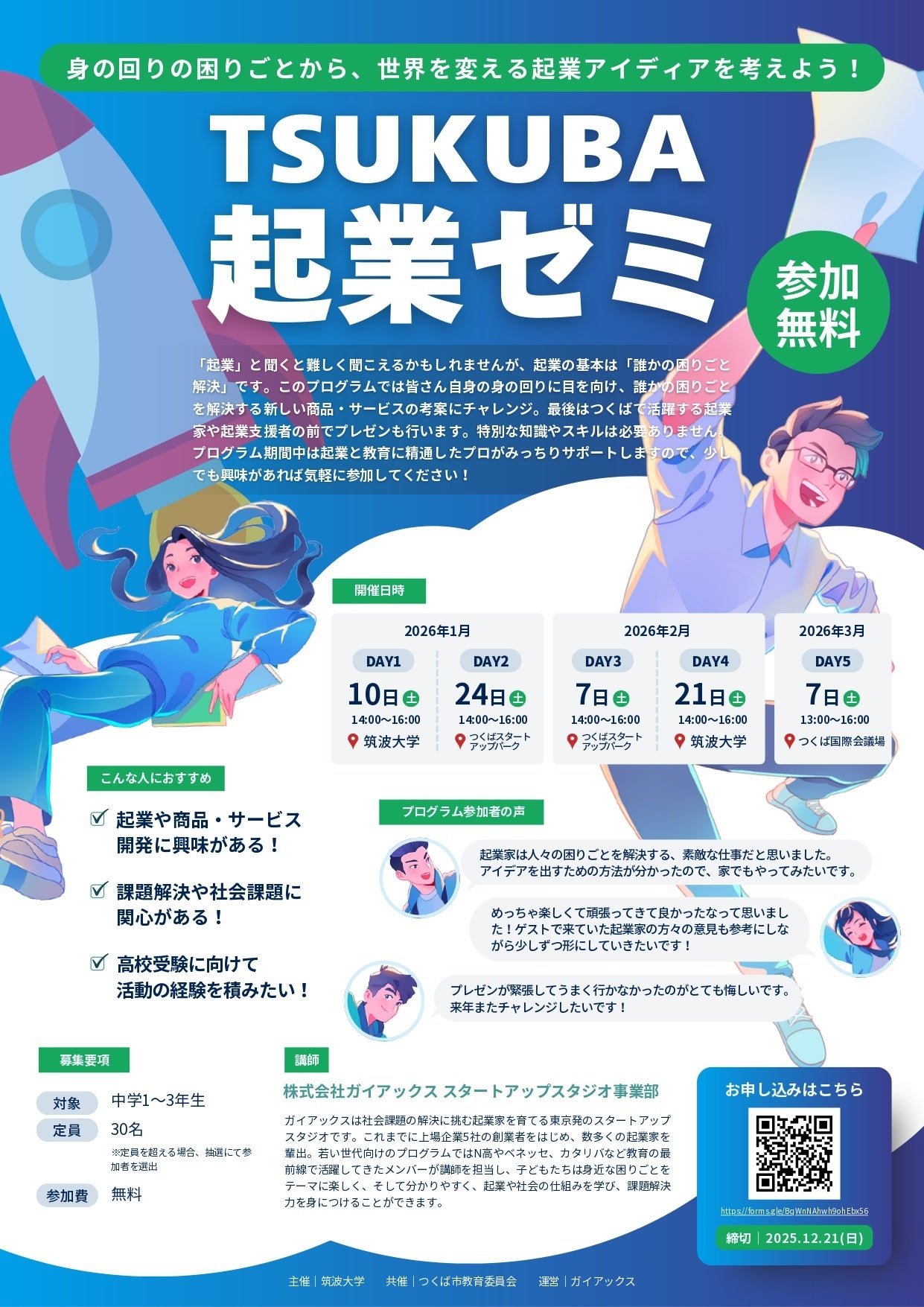 ・筑波大学|【開催案内】小中高生がやってみた!アントレプレナーシッププログラム成果報告会(2025.12.14) | 筑波大学 国際産学連携本部