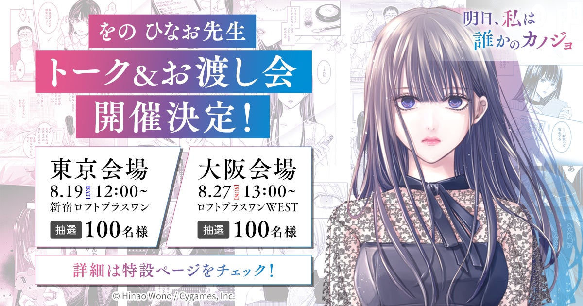 『明日、私は誰かのカノジョ』をの ひなお先生初のトークイベント東京・大阪で8月開催決定!