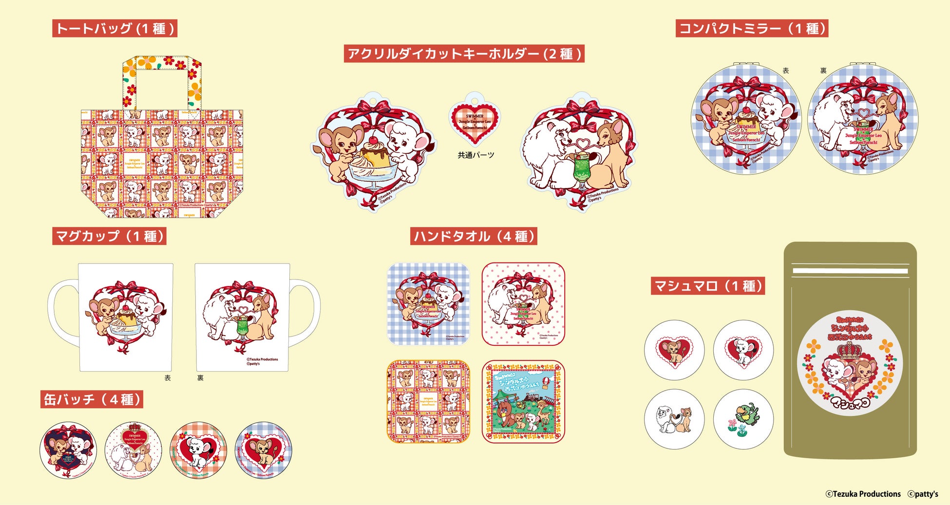 SWIMMER×ジャングル大帝×西武園ゆうえんちのトリプルネームでお届けする、西武園ゆうえんち限定のオリジナル商品の展開です。レオとライヤが“西武園ゆうえんちならでは”のレトロでKawaiiデザートと出会う、ここにしかないスペシャルなデザインのキーホルダー・マグカップや、愛らしい動物がプリントされた、食べるのがもったいなくなってしまうようなチョコ入りマシュマロをご用意!缶バッチは上品なドット柄・かわいらしいチェック柄からお好みに合わせて選べます!さらに、新商品の追加も予定しております。※発売日はご確認ください。