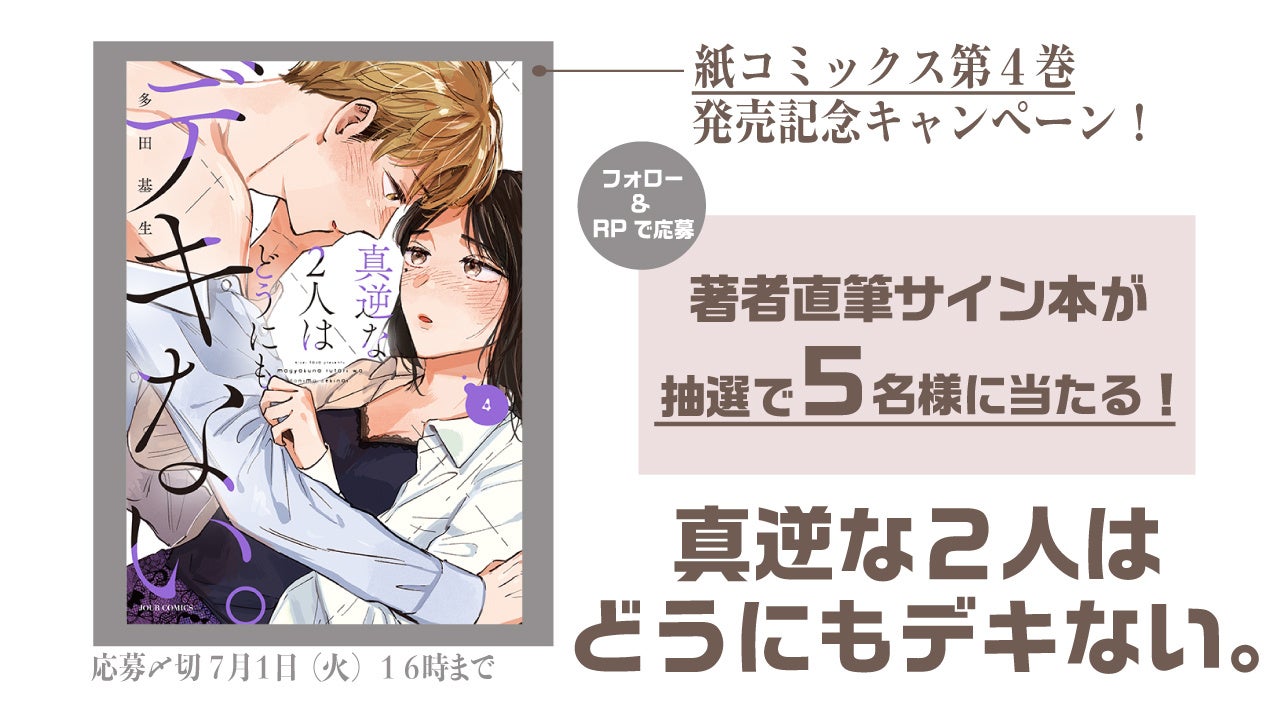 『真逆な2人はどうにもデキない。』紙コミックス4巻の発売を記念して、著者の貴重な直筆サイン本が抽選で5名様に当たるキャンペーンを実施★