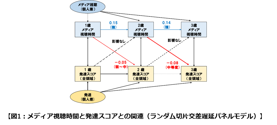カナダの先行研究では、2、3、5歳のメディア視聴時間と発達を比べ、メディア視聴時間が長いと発達スコアが低くなる影響を、2歳から3歳(中等度の影響)、3歳から5歳(中等度の影響)ともに認めたことを報告しています。しかし、より低い年齢でもそのような傾向があるのか、国が違っても同様の傾向を示すのかは明らかになっていませんでした。