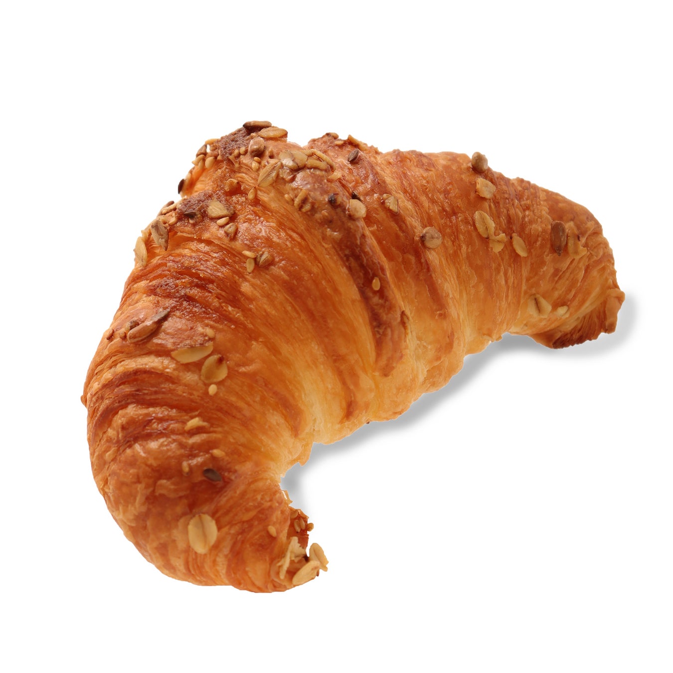 クロワッサンにオーツ麦フレーク・ヒマワリ種・ゴマ・亜麻仁の雑穀を散らして焼き上げました。